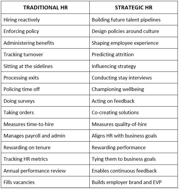 WHAT TRADITIONAL HR LOOKS LIKE VS WHAT STRATEGIC HR LOOKS LIKE